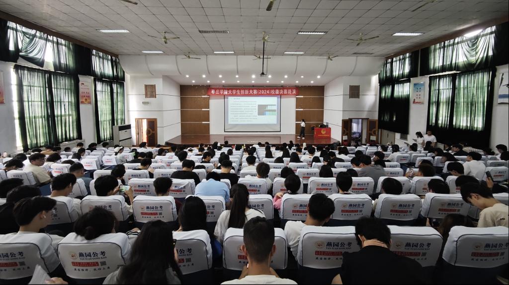2024年6月16日上午,枣庄学院大学生创新大赛(2024)校级选拔赛决赛在文科楼报告厅举行。各项目团队成员和指导老师、观演学生等近300人参加了活动。